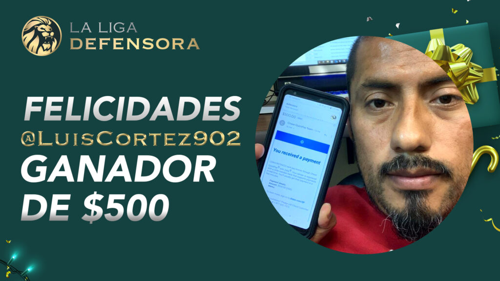 Luis Cortez el ganador de los $500 del concurso Navideño de la Liga Defensora